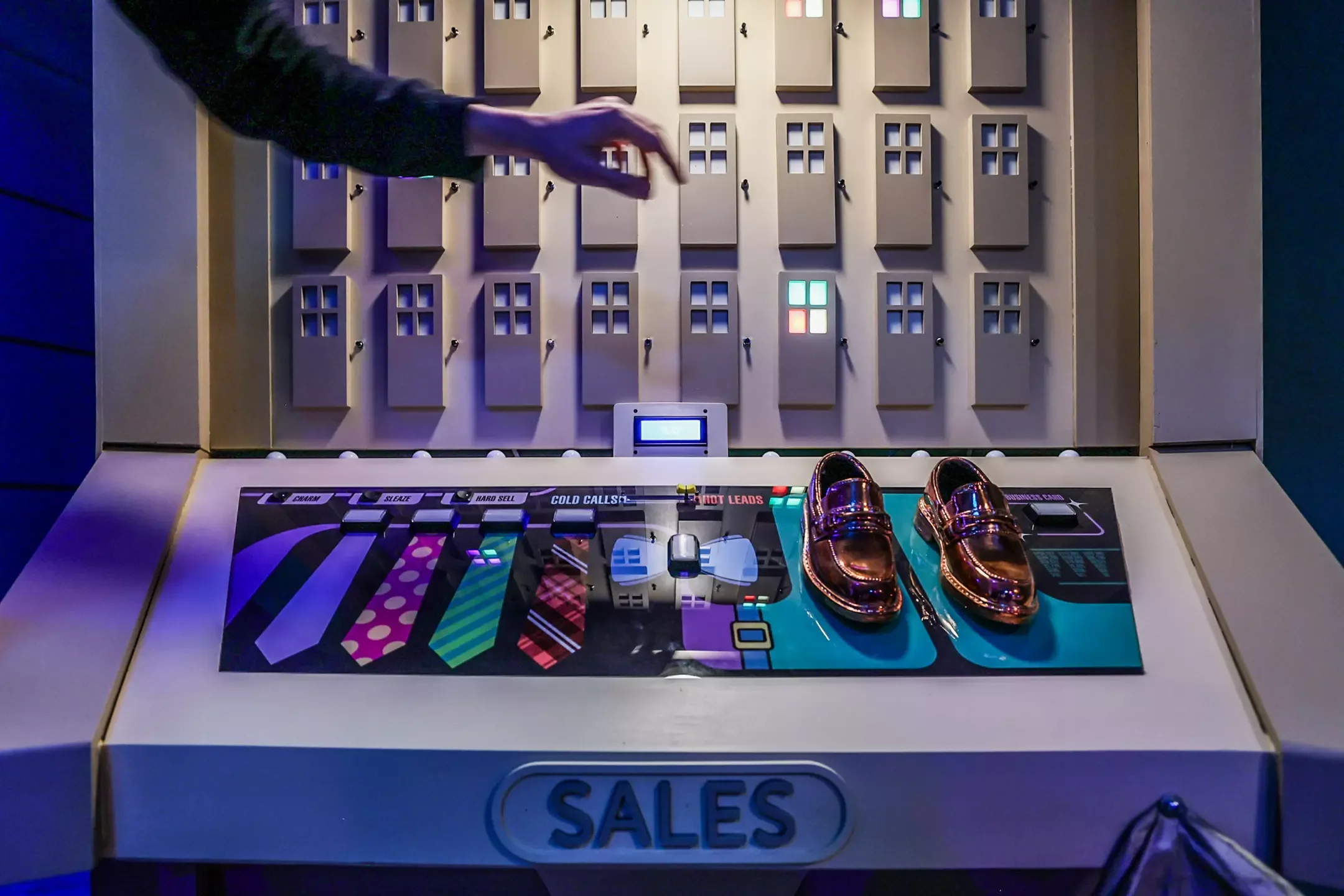 The Ladder’s crowning achievement, however, and the piece that truly sets it apart from any other escape room we’ve experienced, is its narrative ambition. Spanning five decades, the story charts your character’s rise through the corporate ranks of shady, Omaha-based vitamin manufacturer Nutricorp. Every choice you make and every puzzle you solve impacts the final outcome, with 12 possible endings to discover. Along the way, you can start a family, hire a secretary, develop your character, and face down your rival, the unscrupulous Stab Backner (portrayed in cinematic cutscenes by Entourage’s Jordan Belfi). The writing is sharp and funny, and most importantly, it invites you to participate in and shape a full-fledged storyline—territory into which few escape rooms have truly ventured.